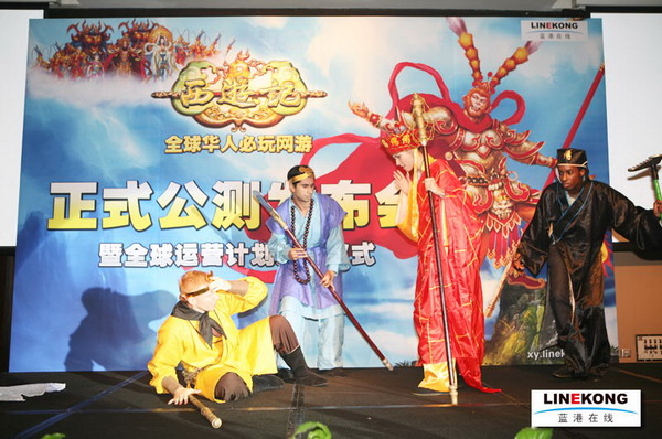 8月4日,第三代网游领军企业蓝港在线在京召开发布会,宣布旗下热门网游《西游记》将于8月6日14:00启动公测,并正式对外发布具有里程碑意义的游戏新版本。由各国玩家助阵表演的Cosplay“孙悟空三打白骨精”成为发布会一大亮点,将现场气氛推向最高潮。