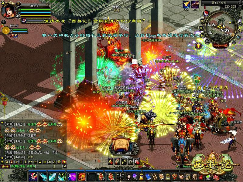 活动期间,玩家只要登录《西游记》,在“蟠桃劫、闹龙宫”副本中击杀怪物,即有几率获得“节庆礼花”(掉落烟花为绑定物品不可交易)。燃放烟花即可释放华丽烟花效果,同时玩家可获得15分钟双倍经验BUFF效果。